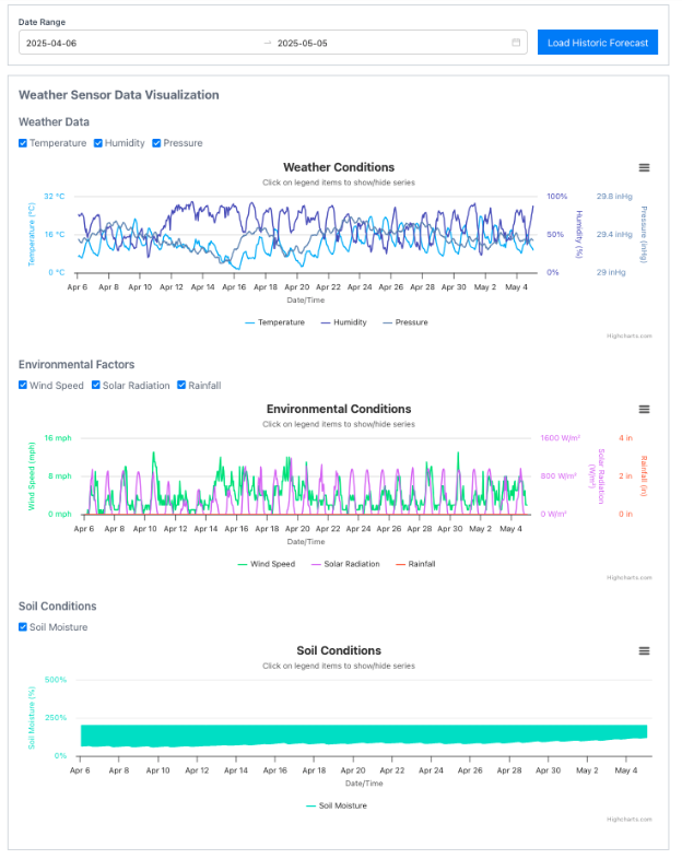 A customisable, self-service dashboard has been delivered, facilitating access to and interaction with data and decision-support services for agri-stakeholders. The dashboard enables: